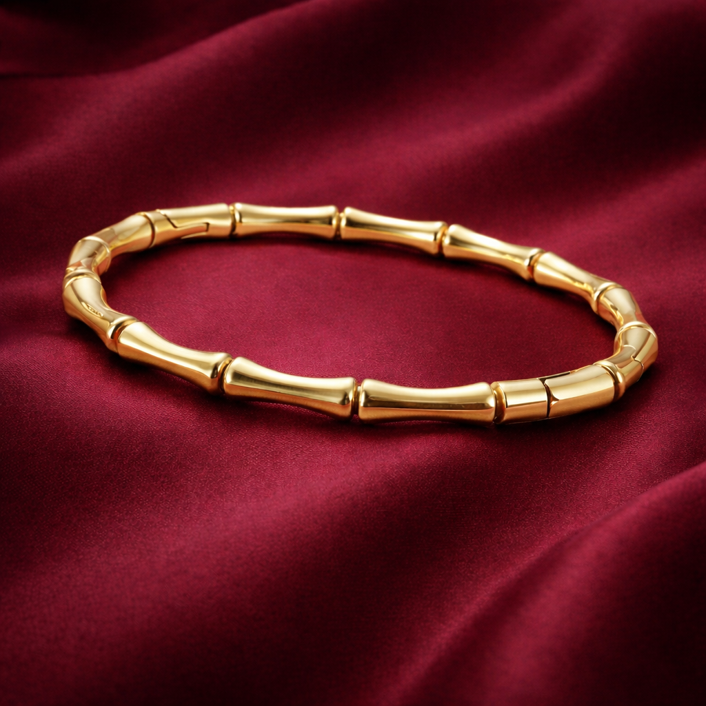 ヴァラは、竹の茎の優美な力強さからインスピレーションを得た彫刻的なゴールドのバングルです。